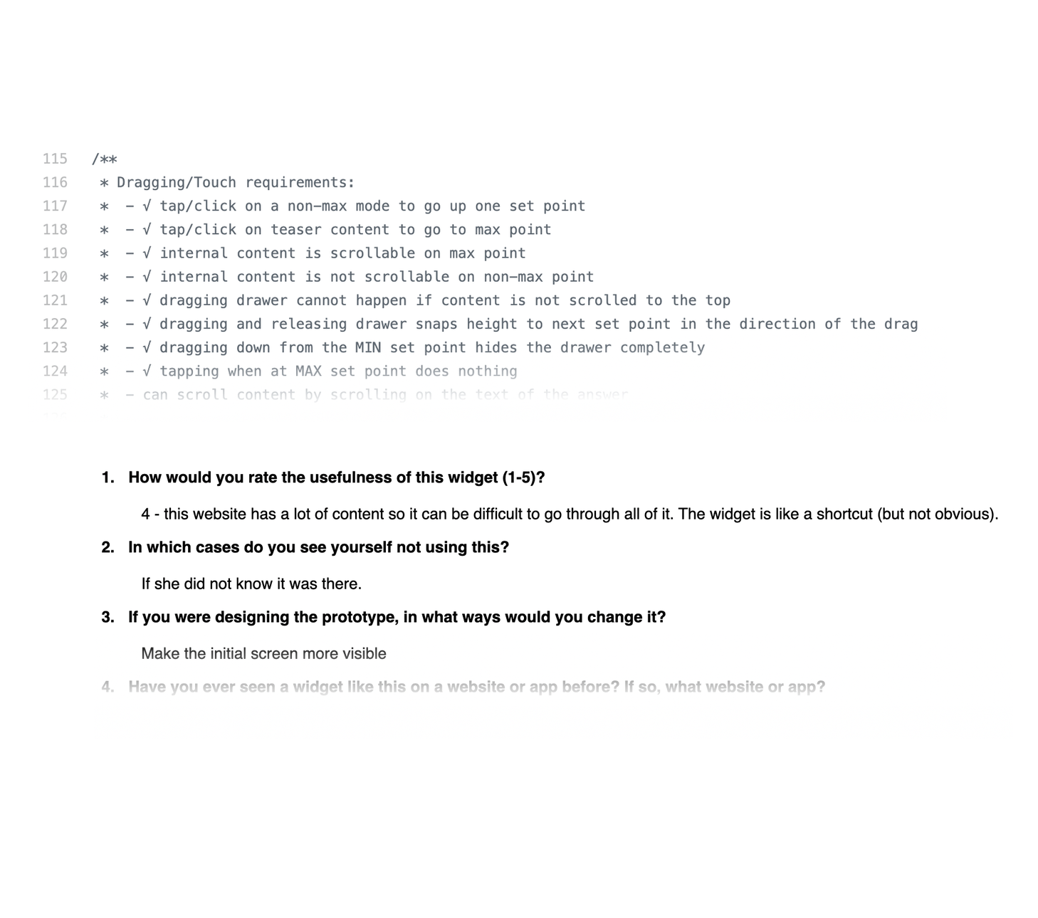 Detailed comments in the codebase as well as walkthroughs of the interaction and key user results enabled the development team to integrate the changes into their production codebase in minimal time.